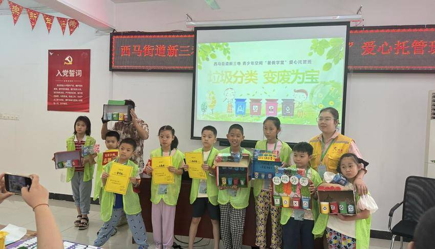 西马街道公管办携手新三巷社区,在青少年空间推出趣味课堂。通过观看垃圾分类宣传片、讲解垃圾分类基础知识、将垃圾变废为宝等形式,加深孩子们对垃圾分类重要性的认识,激发他们对环保事业的热情与责任感。