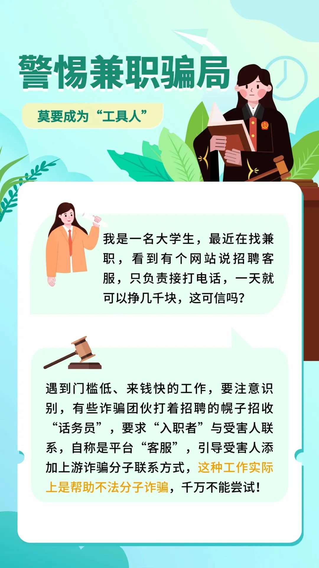 高薪招聘客服、消除不良征信、出借银行卡......信息技术飞速发展,电信网络诈骗“套路”越来越深,江岸区法院制作反电诈海报,提醒大家谨记:未经验证的来电、信息,莫“轻信”。妥善保管身份证号、银行卡密码等个人隐私,确保信息安全。发现任何可疑行为,果断采取措施——挂断电话、关闭页面、报告警方。