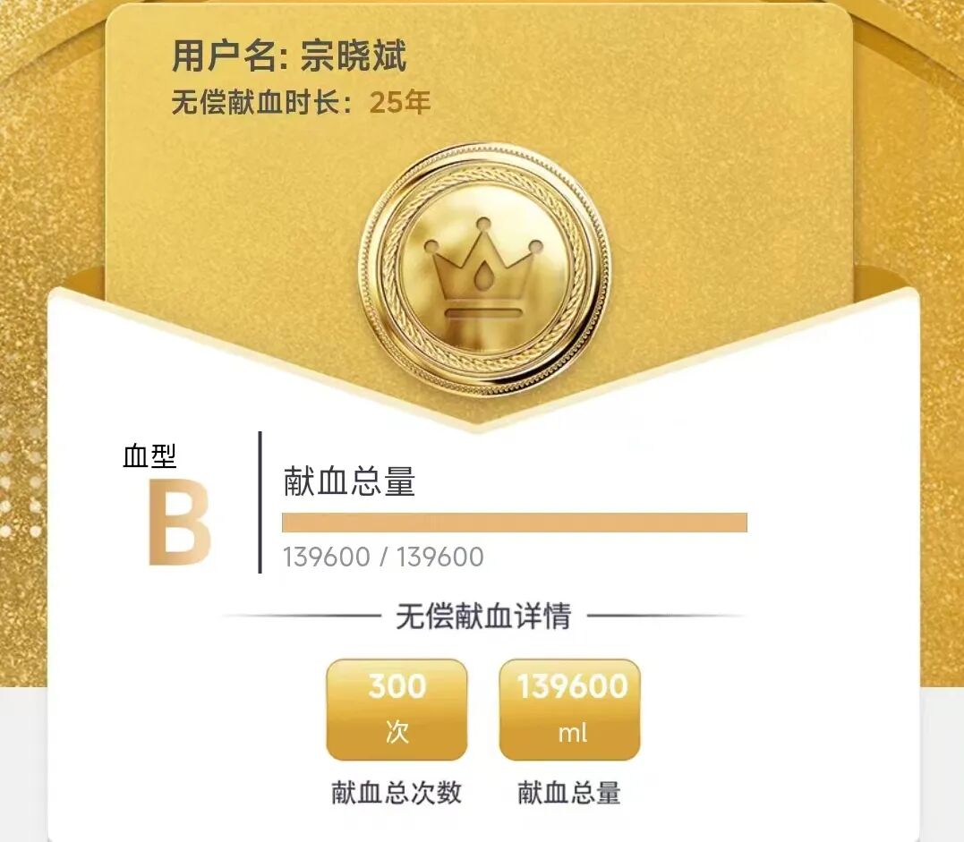 1998年,宗晓斌第一次走上献血车。25年间累计献血达300次,献血总量超13万毫升。