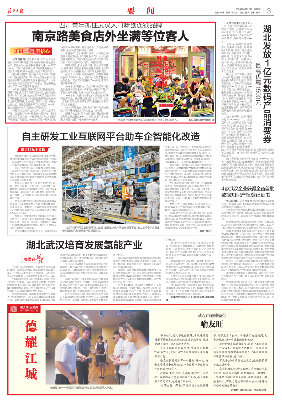 20年前,揣着打工赚来的几百元钱来到武汉,何易发现:“武汉话有点像我家乡话,这让我对这个城市有了亲切感,就决定留下来了。”他介绍道,武汉是一个包容性很强的城市,在美食方面尤其明显,北流南派,只要口味好,都能在这里立足。