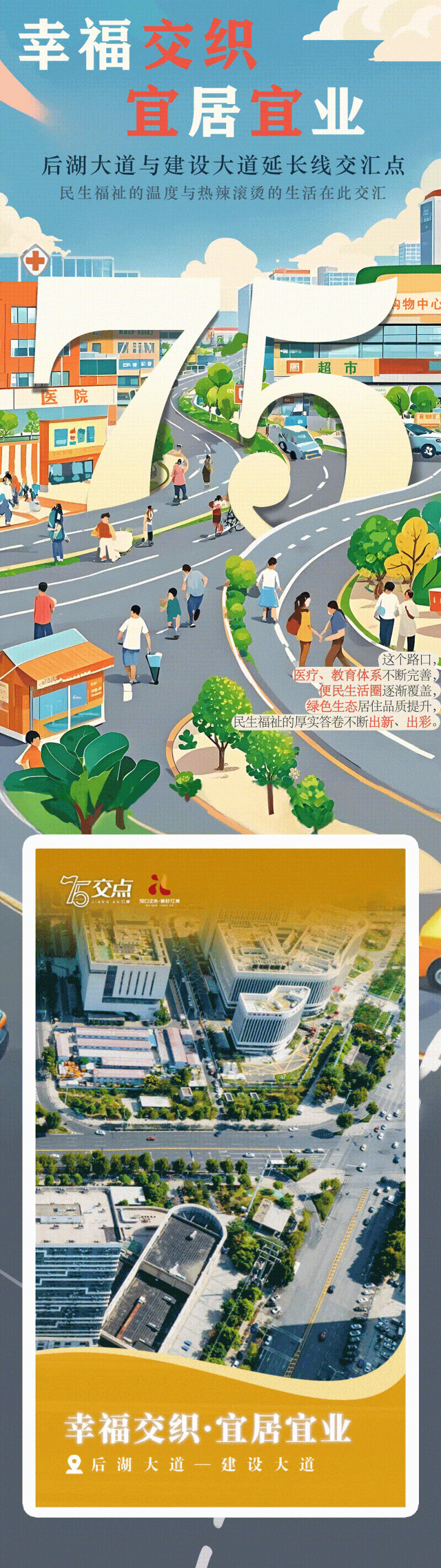 江岸区以后湖大道与建设大道延长线的交会点为支点,聚力城区建设转型,打造宜居宜业现代化品质城区。坚持转型与更新并重,推动大后湖片区产城融合发展。同时,牢固树立“抓民生就是抓发展”理念,积极回应群众对教育、医疗等优质公共服务的需求,让这个充满活力与希望的路口,见证着城市的发展与变迁,承载着民生愿景落地为幸福实景。