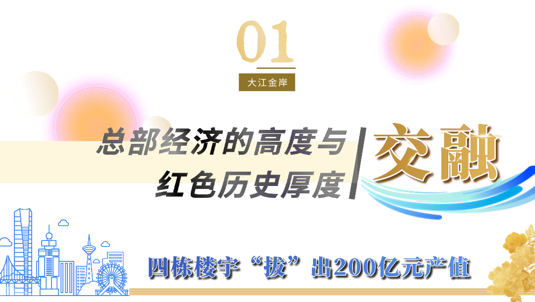 总部经济的高度与红色历史厚度在此交融,国际范儿现代生活方式与老城记忆在此交织,过去、现在和未来在“黄金交点”交映,熠熠生辉。