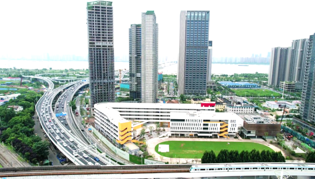 2024年7月,汉口滨江国际商务区西北侧的武汉市七一华源中学滨江校区三幢主体大楼建成完工。这座占地1.8万平方米的现代化校园,涵盖了教学楼、报告厅、运动场及多功能室等一系列现代化设施。
