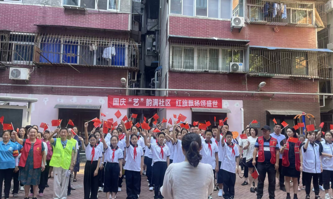 劳动街道艺苑社区举办“国庆‘艺’韵满社区,红旗飘扬颂盛世”主题活动。武汉二中广雅中学学生代表现场宣讲,表达青年对祖国的深情告白和坚定承诺,社区书记和志愿者们抒发对祖国繁荣昌盛的祝福,与对社区美好生活的期盼。