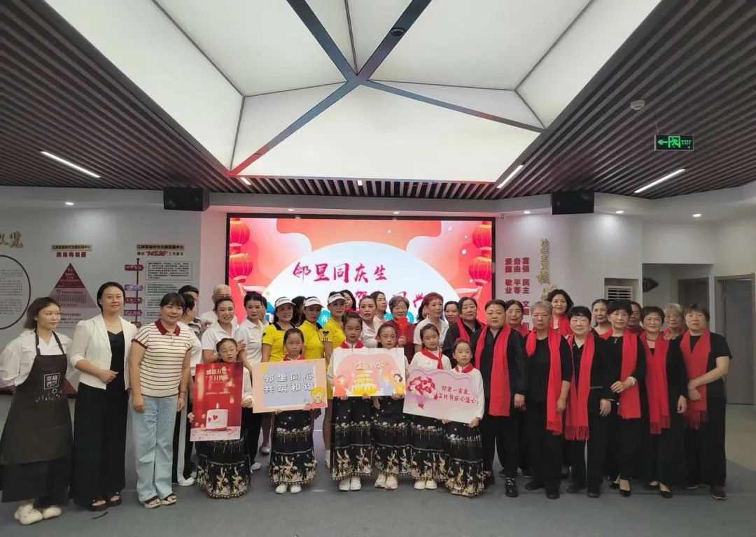 新村街道举办“邻里同庆生·共贺家国兴”主题活动。铁南社区居委会联合新村街道社工站、新村小学、彩霞之家志愿者和辖区居民在江岸区新时代文明实践中心,开展文艺演出、蛋糕DIY等一系列精心策划的活动,喜迎国庆的同时强化社区居民间的团结友爱。