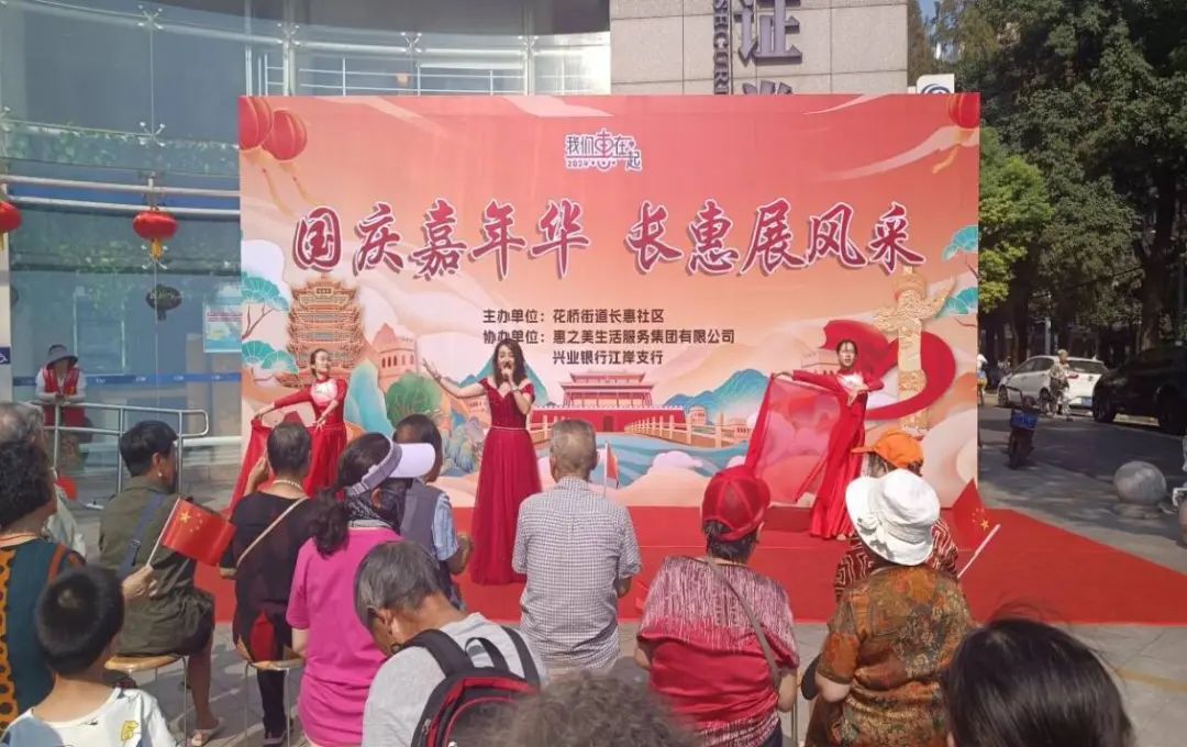 花桥街道长惠社区举办“国庆嘉年华 长惠展风采”活动。红桥锣鼓队、辖区共建单位育才幼儿园老师、辖区党员代表、社区工作人员等各展才艺,带来歌舞、演奏等表演。便民服务及游戏互动让居民度过愉快时光。活动展示社区风采,表达居民对祖国的热爱与祝福。