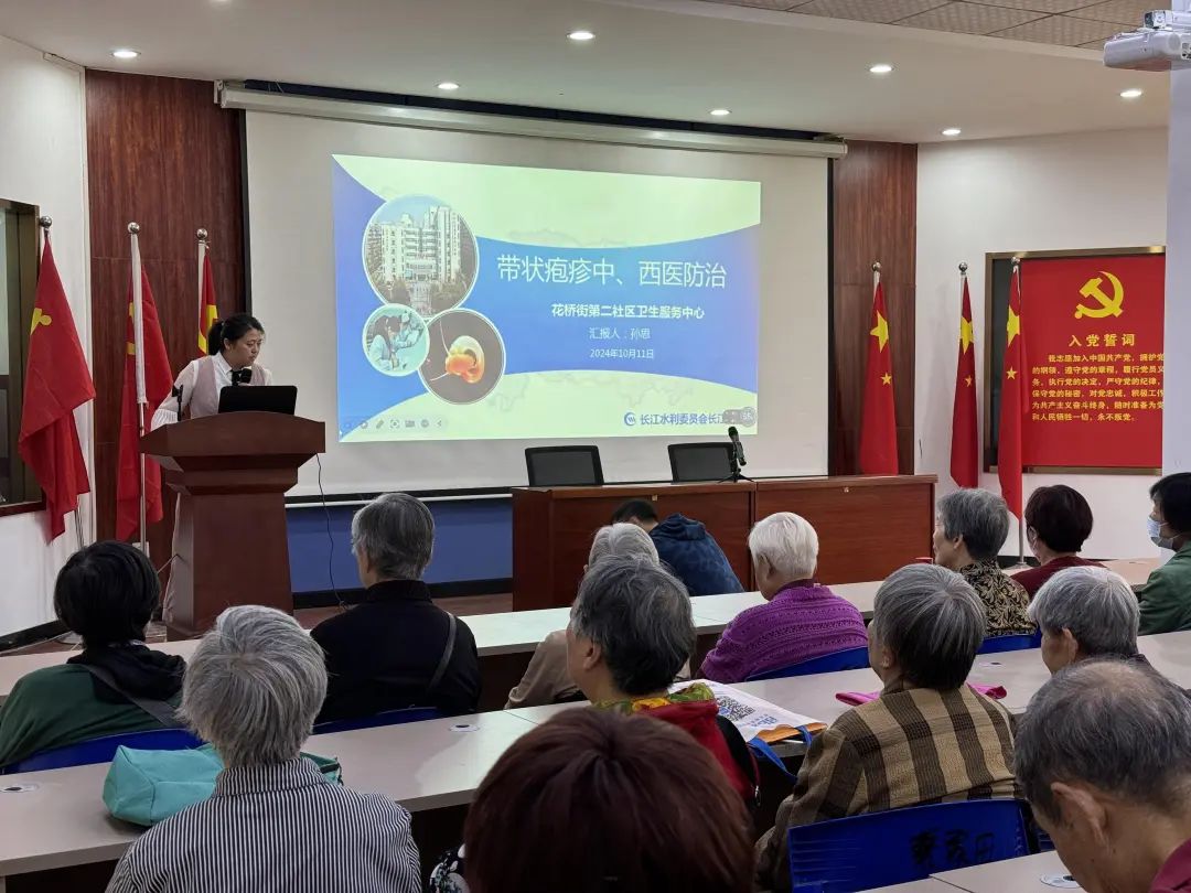 区委宣传部(区文明办)组织开展重阳节文明实践活动。指导区新时代文明实践中心、花桥街道新时代文明实践所、花桥街道蔡家田社区新时代文明实践站开展“重阳敬老 情暖金秋”健康科普知识讲座活动。为居民群众科普预防带状疱疹等健康知识,并为现场老年人举办长者生日会,营造尊老敬老爱老的良好社会氛围。