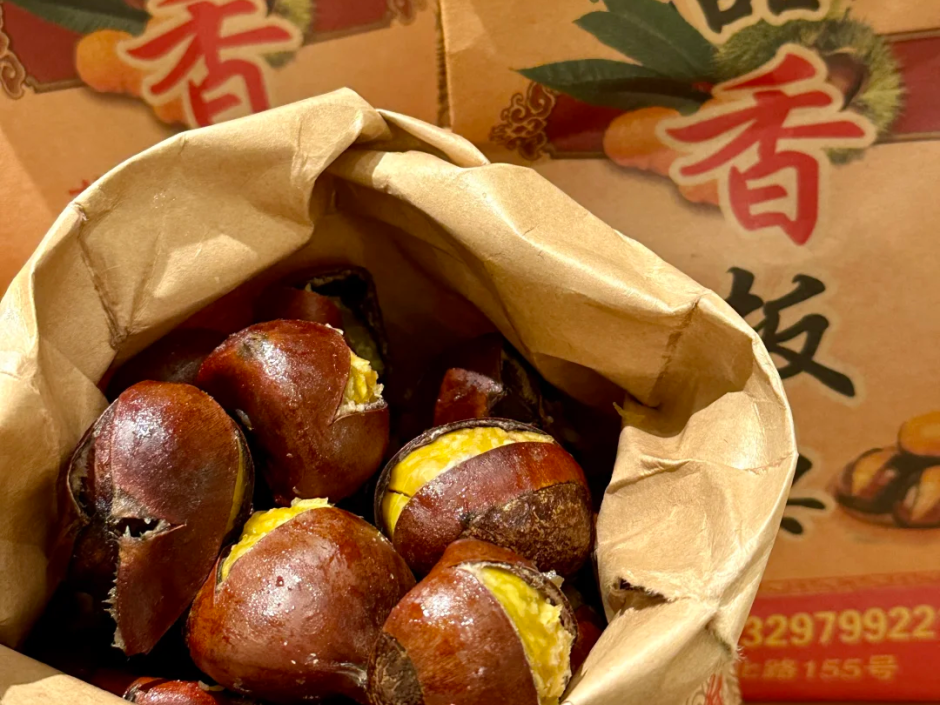 位于台北路的“一品香”板栗颇有人气,窄小的门面前一条长队蜿蜿蜒蜒。纸袋里胖嘟嘟的板栗咧着嘴露出金黄的果肉,咬上一口溢满甜蜜。