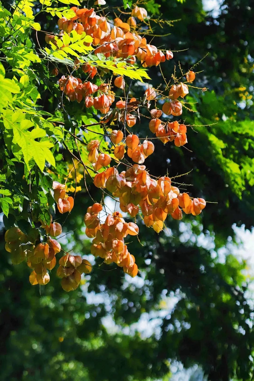 除了爆香的秋桂,江岸的秋日浪漫,还藏在头顶的栾树里。