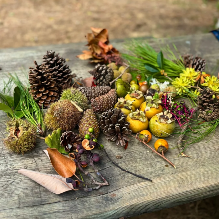 “女儿看到一些果子和花叶,会联想到一些寓言故事,她说这些是小兔子小松鼠的食物。以她的视角来看捡拾到的植物,很可爱。”家住江岸的李女士时常带着女儿在公园内散步,观察飘落的花果叶。
