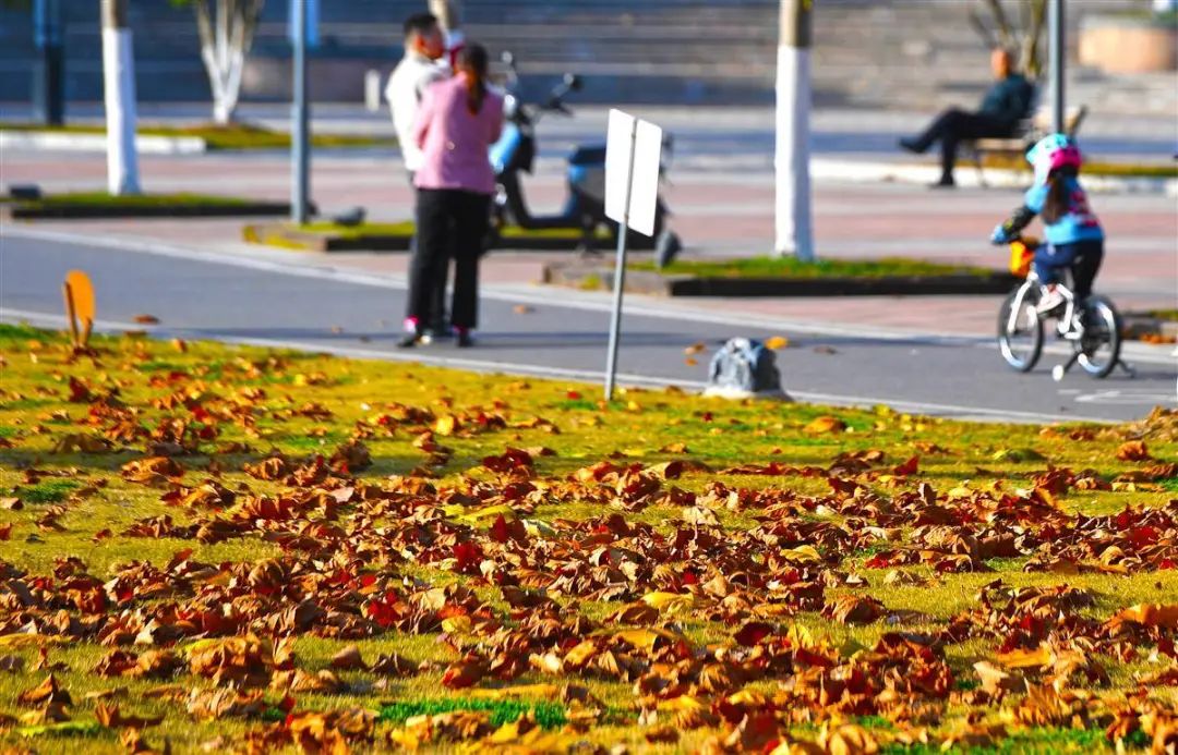 在确保城市基础设施正常运转的前提下,为市民游客留住秋季绚烂的金黄。这些被精心保留的焦糖色落叶编织成毯,等待着“寻宝人”的到来。