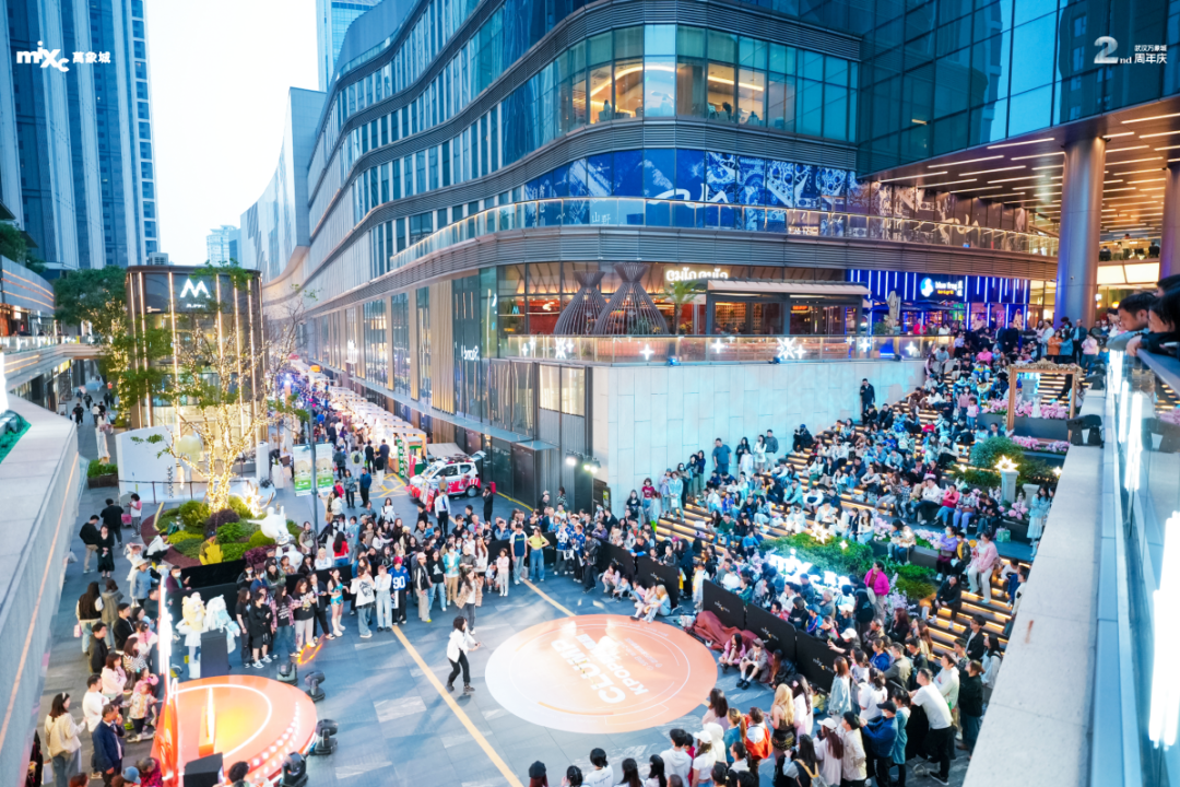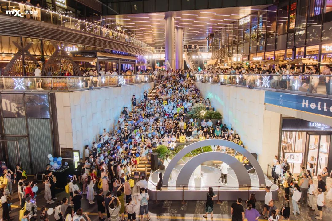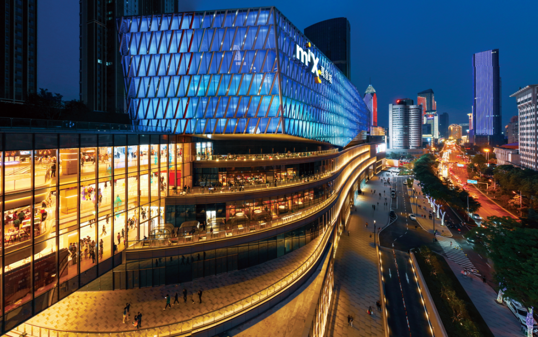 走进武汉万象城,“梯田”式阶梯上的店铺把氛围灯点亮,丰富多样的品牌与夜景为市民带来了别样的购物体验,增加了消费新鲜感。