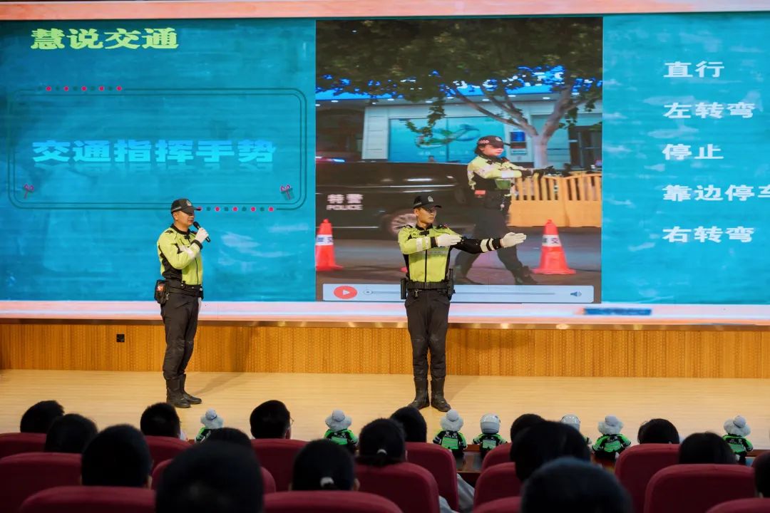 “大家经常看到交警在路上指挥交通,但你们知道这些交通手势是什么含义吗?”活动现场,在汉警快骑队员的示范下,张慧对交通指挥手势一一解读,并提醒同学们在日常出行时,应注意观察信号灯,遵守交警现场指挥,确保安全后再通行。