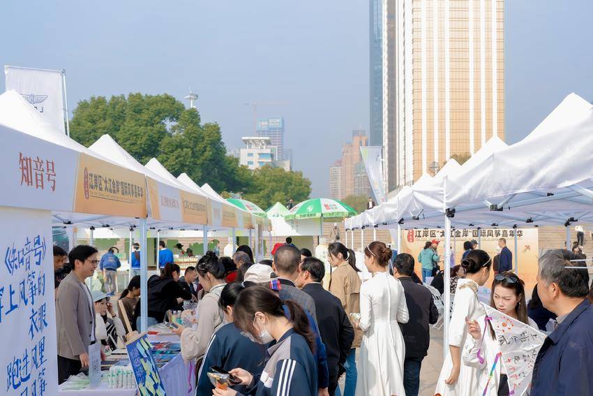 在风筝嘉年华启幕现场,流动文化市集也开进了活动现场,数十家辖区重点文旅体商企业及规上企业参与。在腾飞的风筝下,市民们漫步在市集小摊间,感受江岸区的城市味道,感受江岸在蝶变中的变迁,在城市中寻找快乐与归属。