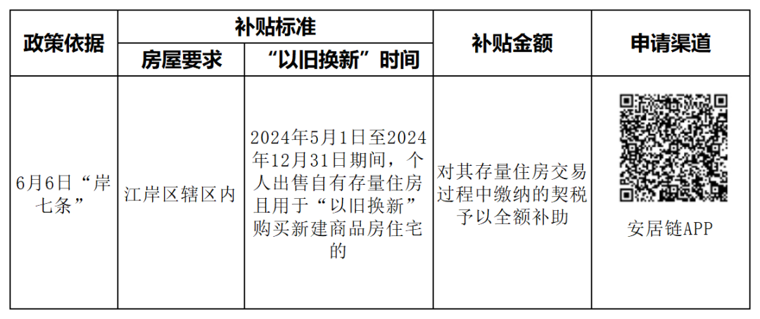 2024年6月6日,江岸区出台《关于促进江岸区房地产市场平稳健康发展若干措施的通知》(以下简称“岸七条”),推出了惠民购房补贴、高层次人才补贴等七项优惠措施。