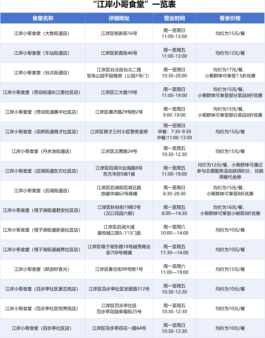按照省市统一部署,针对骑手错峰就餐难、歇脚难、充电难等突出问题,江岸区与美团、老乡鸡、大米先生等企业积极对接,共同推动“小哥食堂”建设,外卖小哥身着工装前往老乡鸡、大米先生门店吃饭,可享7至8折优惠。
