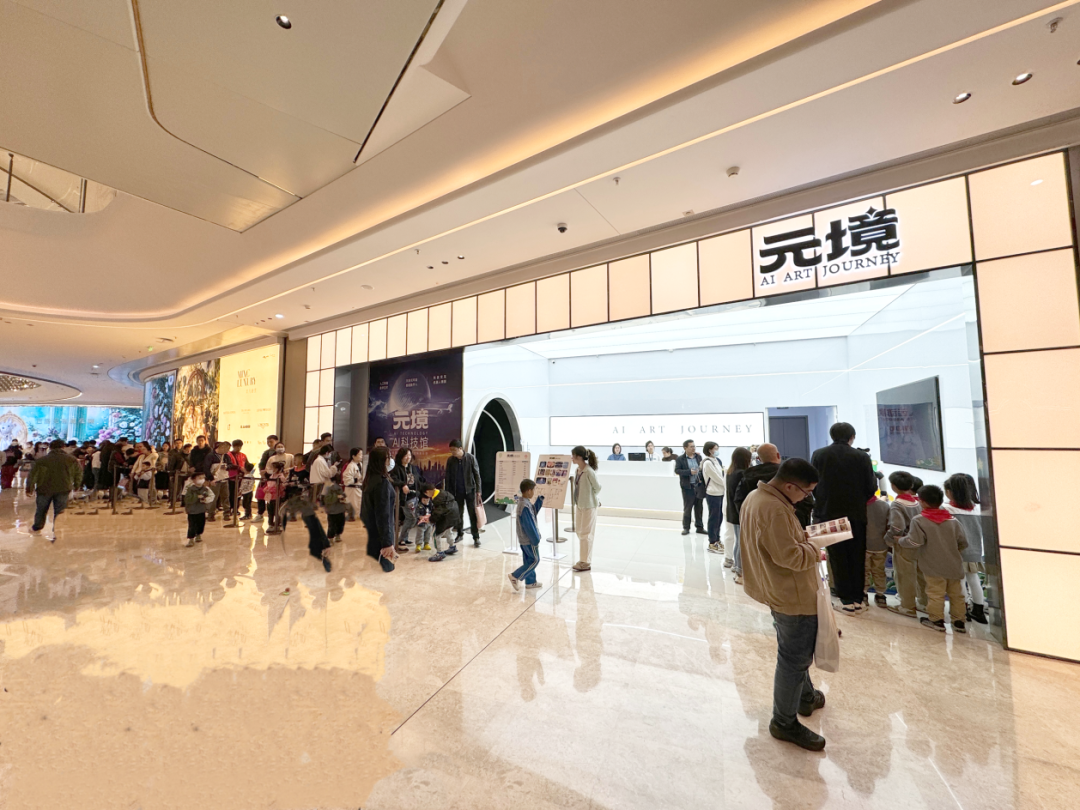 近日,在台北街道武汉万象城1楼,元境·AI奇幻艺术之旅检票口前排起长龙,许多市民、游客慕名来此,实地体验人工智能和元宇宙的魅力。
