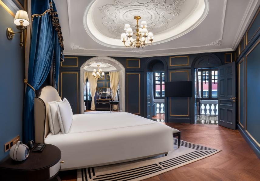 巴公房子曾供200多户租客使用的空间被改造为45间各具特色的客房,面积从45㎡到170㎡不等。最吸睛的巴公套房仅有3间,每间面积达170平方米,拥有雕花吊顶客厅、独立卧室、餐厅、书房、衣帽间、浴室等。该套房的全景户外露台就是巴公房子最热闹的拍照背景,在此可俯瞰黎黄陂路街景,文艺且浪漫。