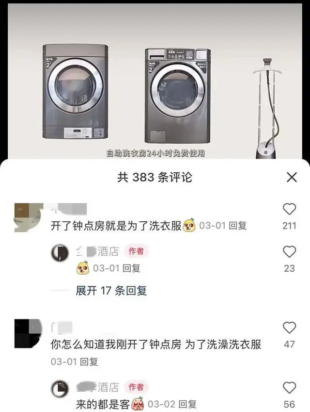 相比之下,在酒店花一百元开一间钟点房,就能用上万元价位的商用洗烘设备,烘出来同样蓬松柔软的衣物,堪称“性价比之王”。