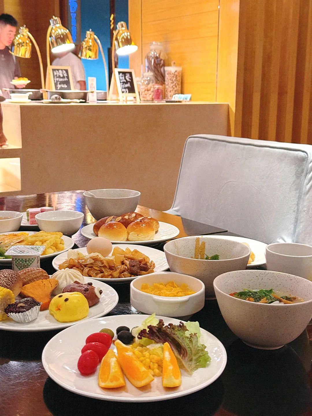 以同样的价格在环境舒适的酒店自助餐厅吃上一顿荤素均衡,还有甜点、水果、咖啡的早餐,显然更加划算。