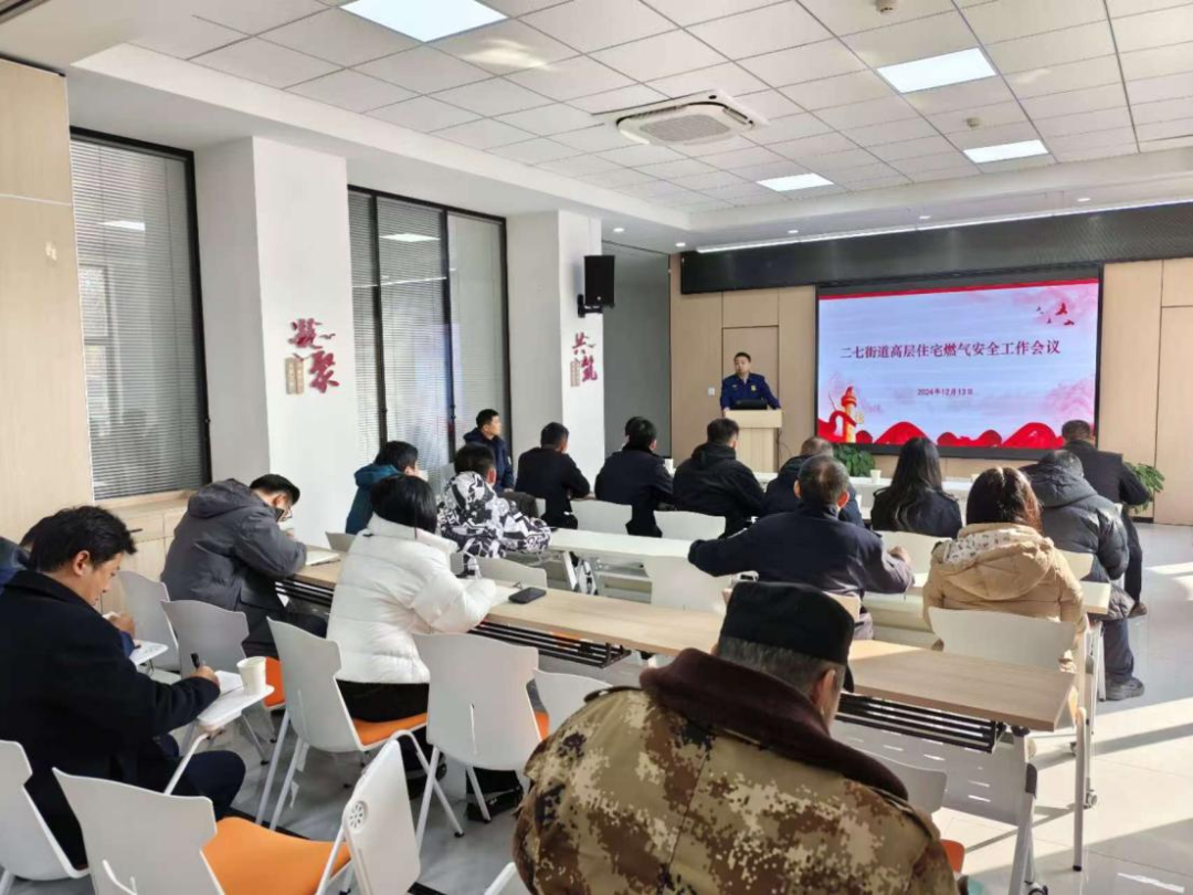二七街道联合区应急管理局、区城管局、区消防救援大队以及武汉市天燃气有限公司组织召开高层住宅燃气安全培训演练部署会。邀请辖区部分高层小区物业代表参加,开展燃气安全知识宣讲、高层消防安全知识培训,加强燃气设施日常巡查维护和高层住宅燃气安全管理。