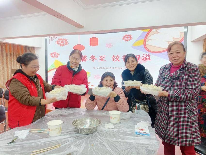 塔子湖街道汉口花园社区举办“温馨冬至,饺情满满”主题活动。社区居民围坐在桌旁一边包饺子一边分享生活中的趣事和难忘经历,共同感受社区大家庭的温暖和关怀,体会传统节日魅力。