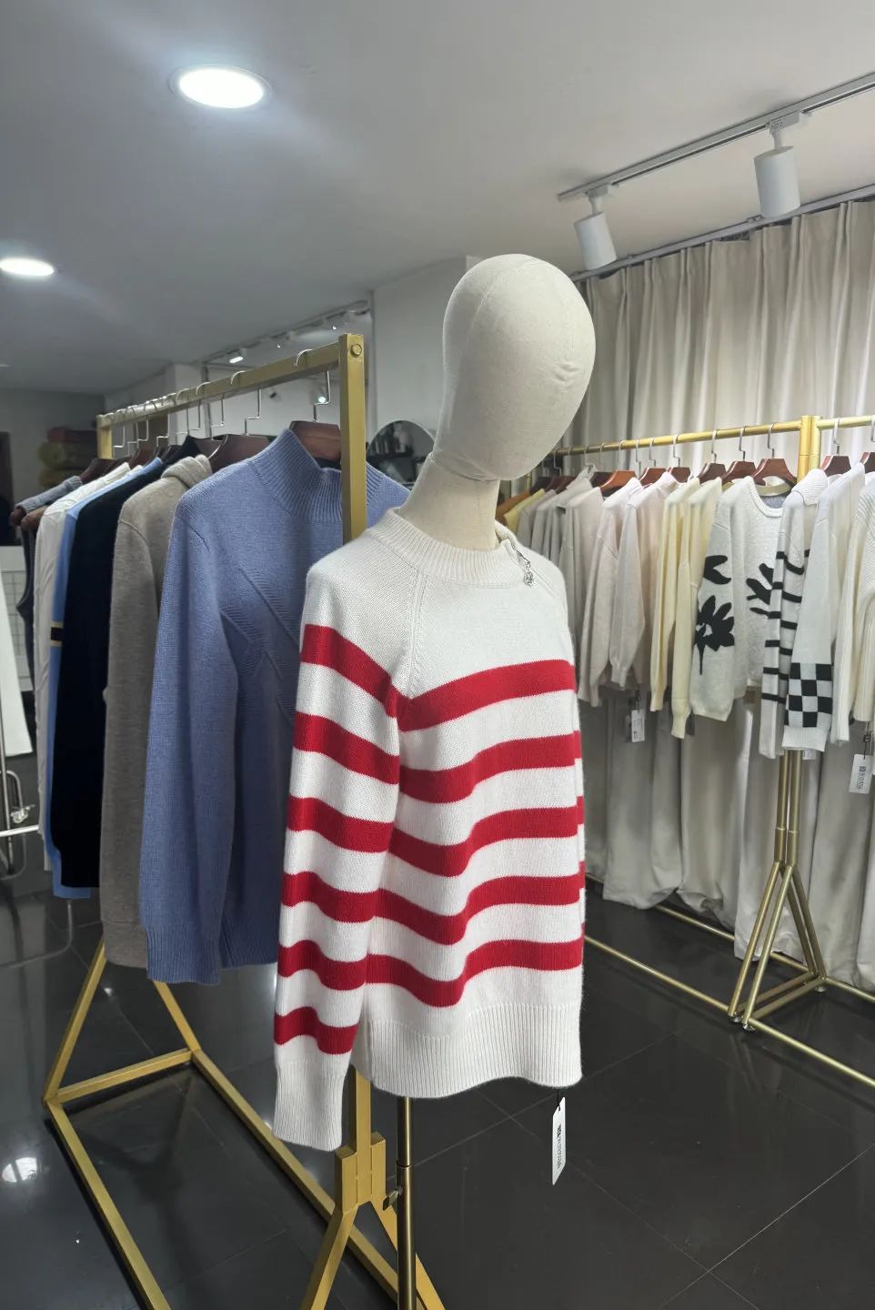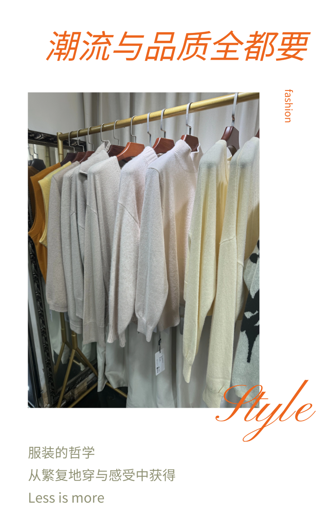 羊毛衫不再是记忆中的古板样子,店里大部分单品注重色彩搭配、剪裁设计,主打“可持续性”,搭配率极高。