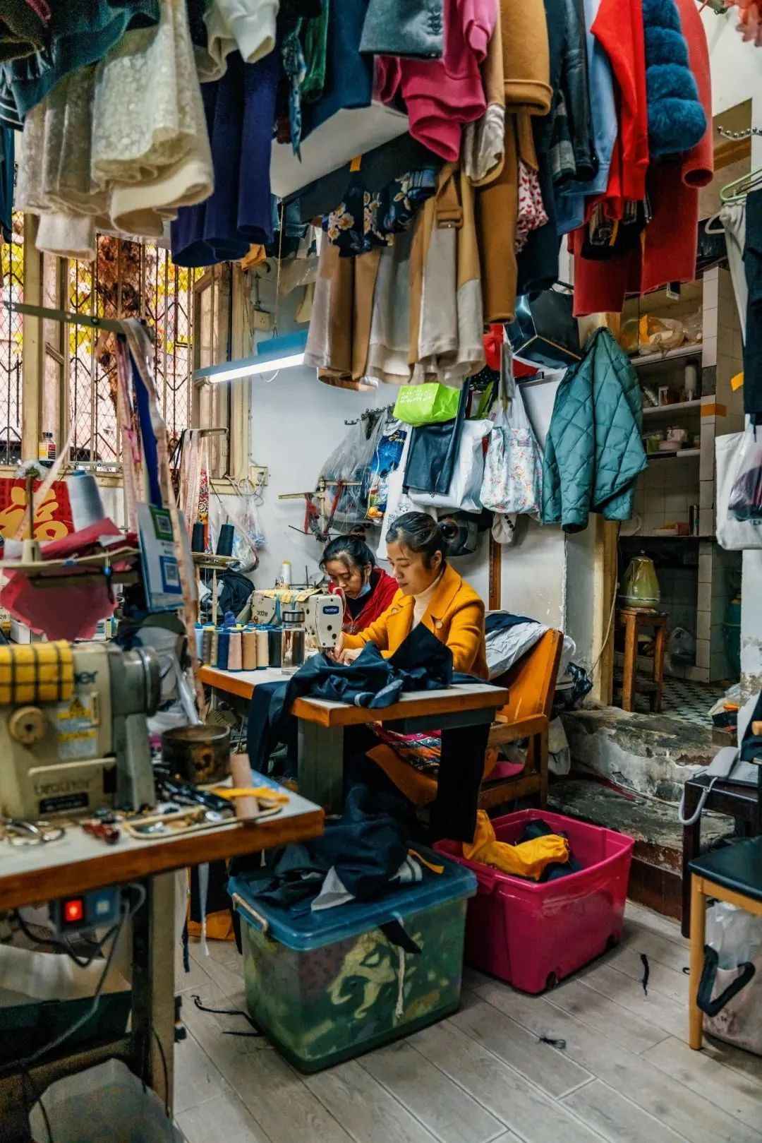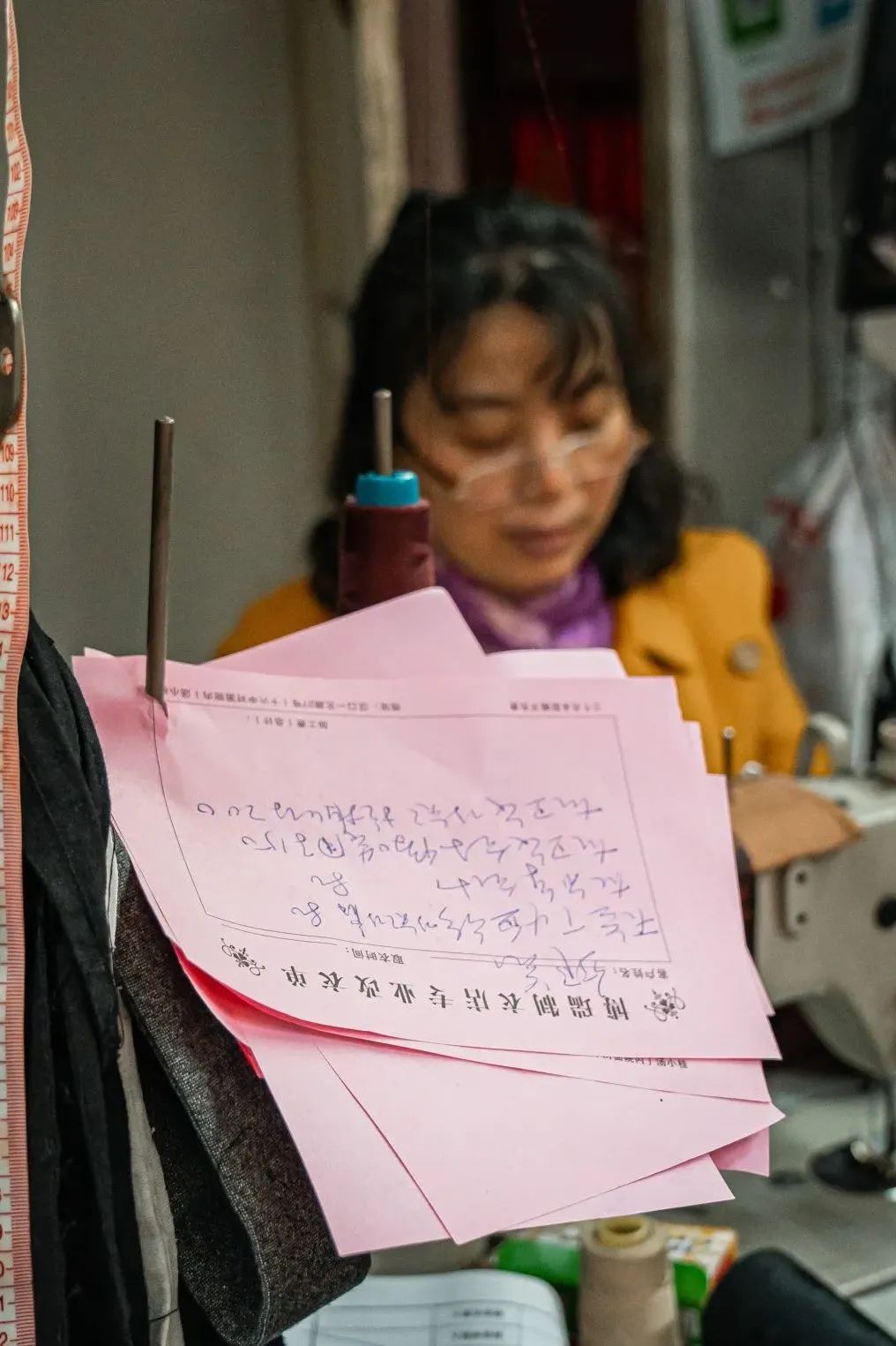 做“无痕改衣”的阿姨叫汤小桂,衣服在她手里可以 S、M、L 随意切换,早年在十六中门口摆摊,后来搬进楼栋,改衣、做衣。