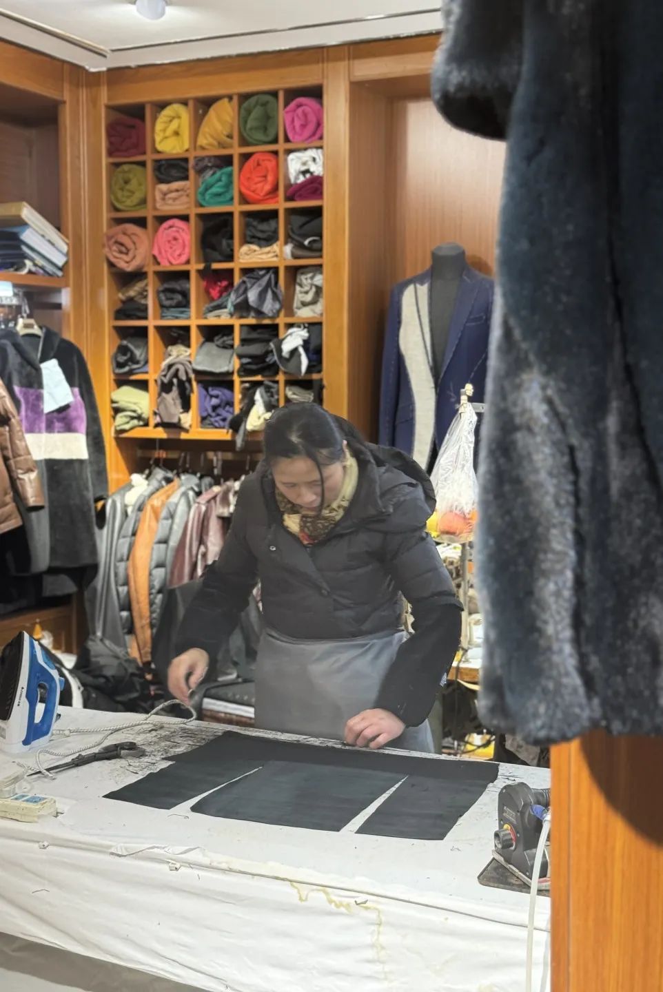 老裁缝师傅坐在工作台前,娴熟地剪掉手中布料多余的线头后说道:“改皮草、翻新皮衣可不容易,我们要根据客人的身材进行调整,尺寸差点效果都会差很多。”