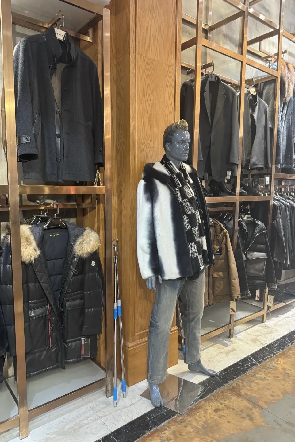 沿着解放公园路往中山大道上走,看到橱窗处站着几位穿着皮衣的模特后,就能找到「雪奴皮衣私人定制馆」了。