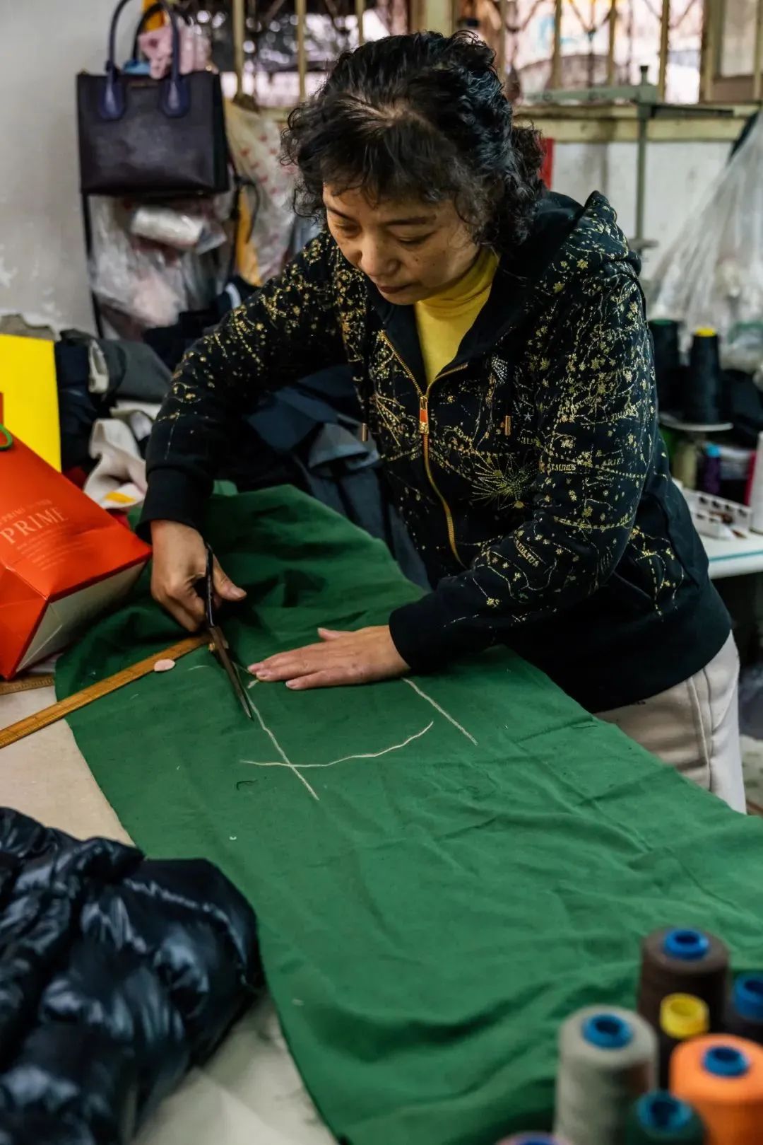 量体裁布、布料拼接、锁边缝纫、夹线钉扣、熨烫衣服……这是改一件衣服所需的工序。