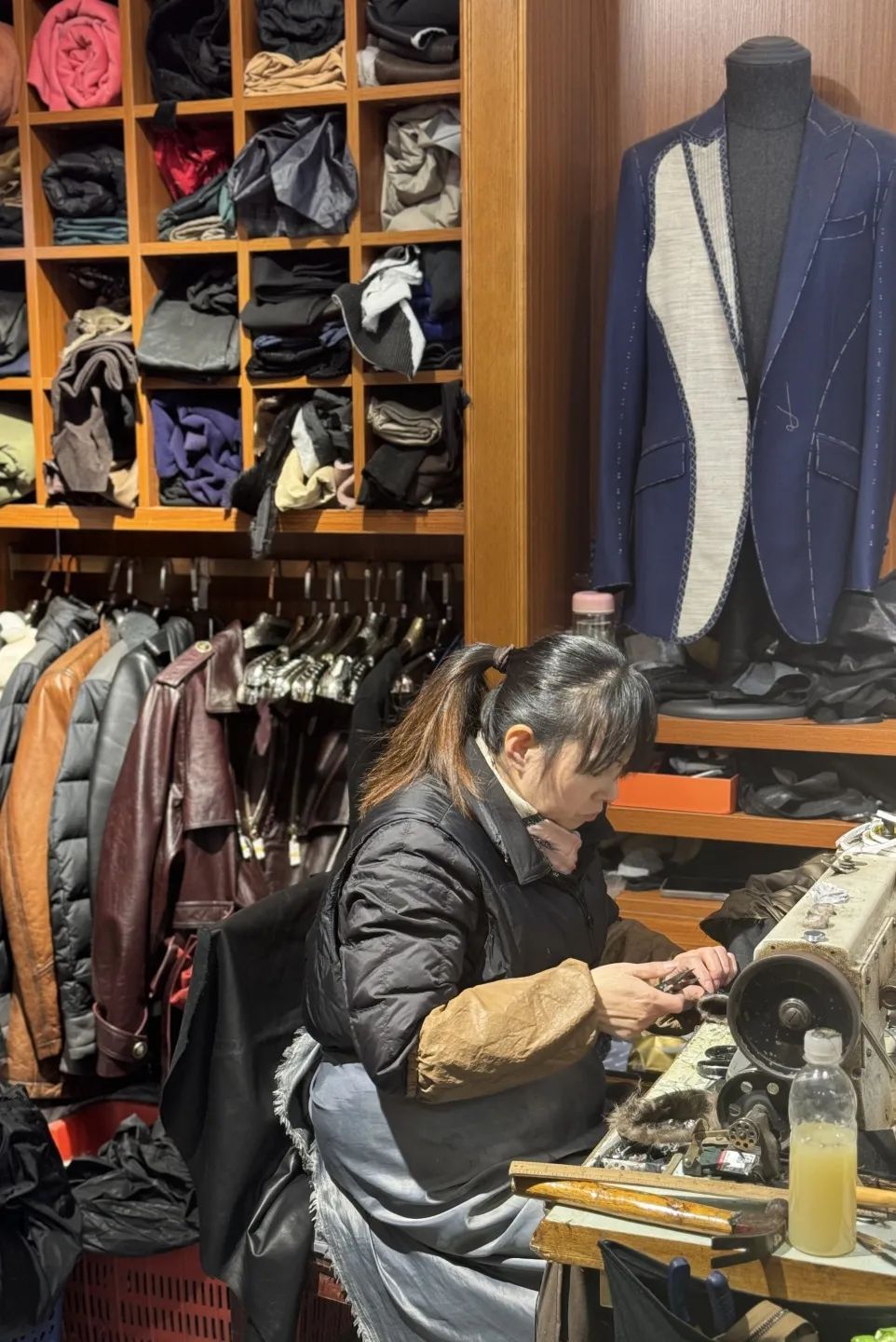 比如个子娇小的顾客,可以帮忙调整一下袖长或裤长。面对经常需要板书的老师,会有意调整他们衣服手肘与肩部的宽松度。