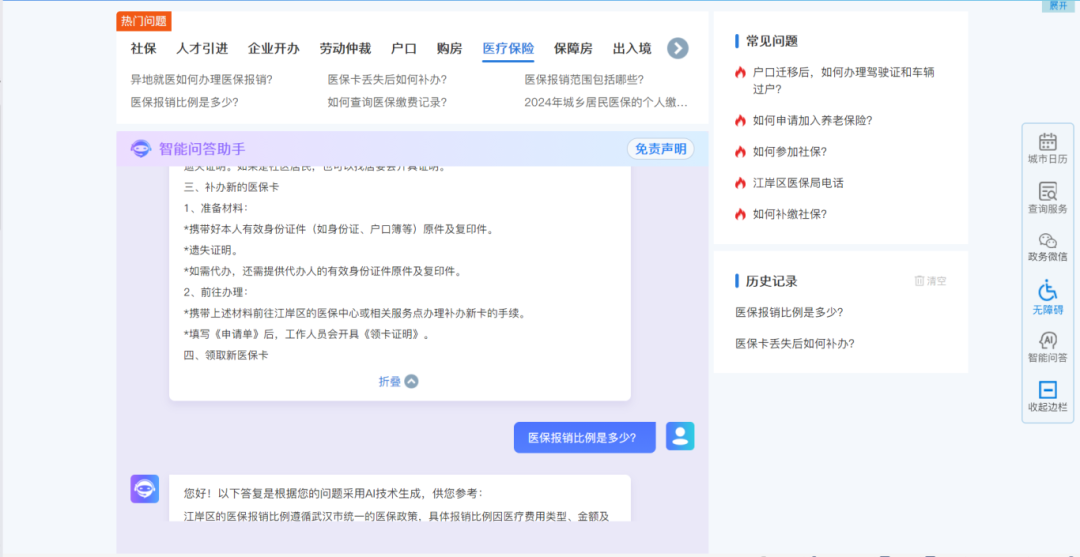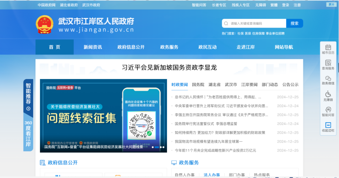 江岸区“政务大模型赋能,重塑政府网站数智化生态”应用场景引入政务大模型和人工智能技术,构建线上AI交互新模式,通过智能问答、智能搜索等小切口,探索网站数智化生态建设,推进政府门户网站数字化和智能化的有机融合。