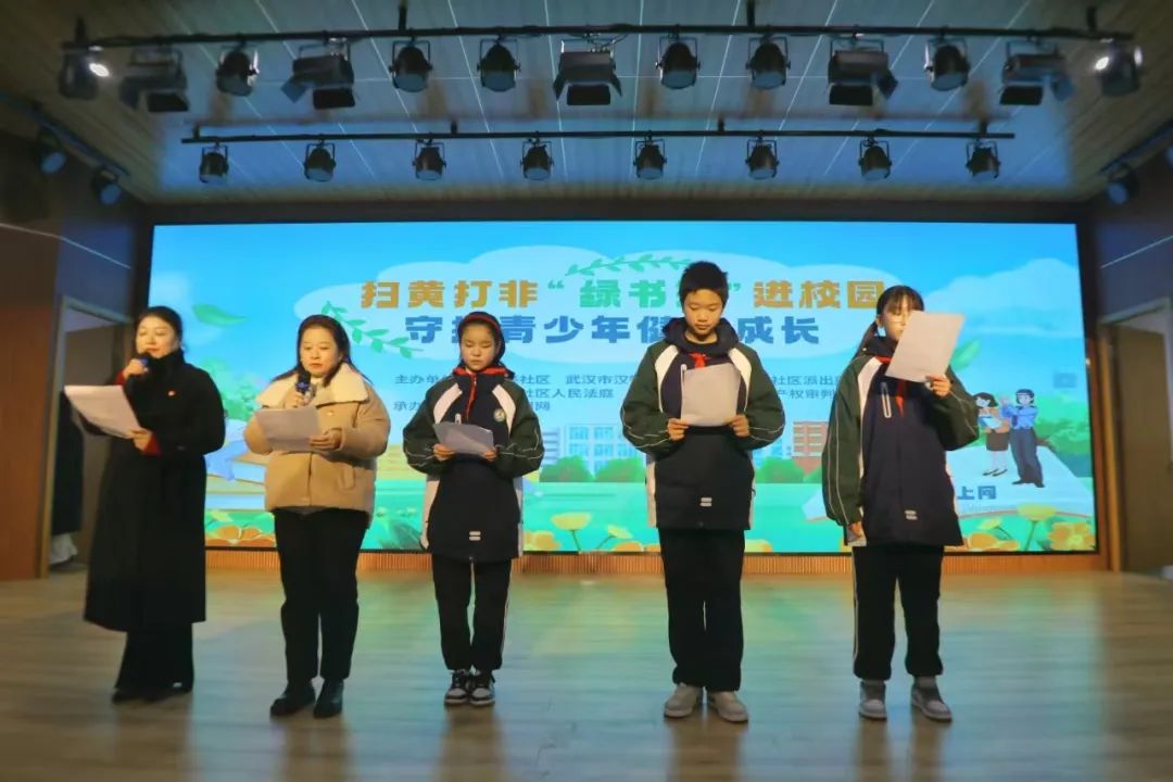 百步亭社区联合百步亭派出所、百步亭社区人民法庭走进武汉市汉铁初级中学。社校联合开展“扫黄打非‘绿书签’进校园 守护青少年健康成长”主题活动,共同守护辖区未成年人健康成长。