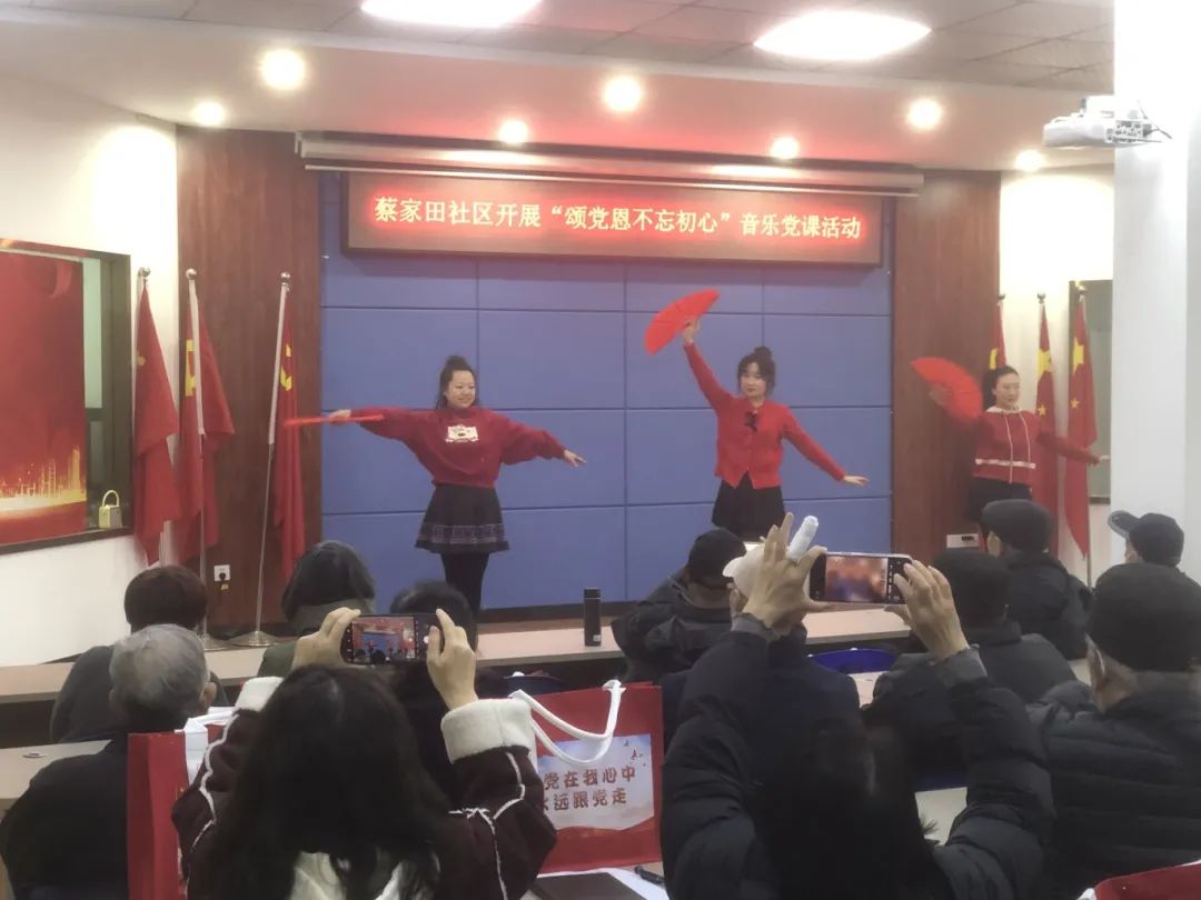花桥街道蔡家田社区开展“颂党恩不忘初心”音乐党课暨庆元旦佳节活动。联合共建单位江岸区博雅小学、江岸区英才幼儿园、民生银行发展支行以及“两新”党组织,用音乐传承信念,厚植辖区党员爱党爱国情怀,共筑美好蔡家田社区。