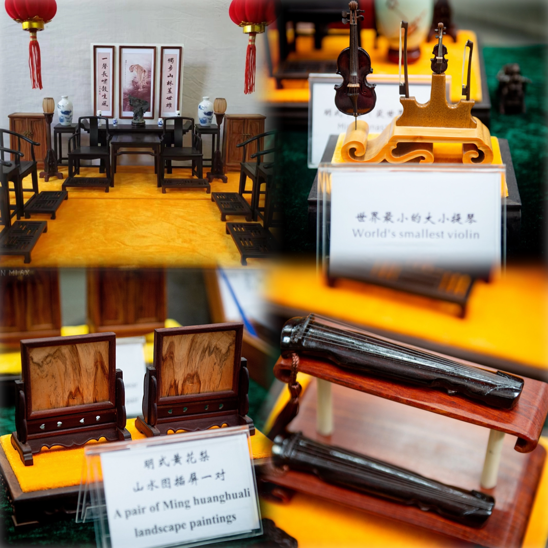 微缩木雕技艺创作的题材非常丰富,包括古典建筑亭台楼阁,明清古典家具,中国传统的农具和工具,中国民族乐器等。武汉沈家将微缩木雕技艺代代传承,融合了雕塑、核雕、绘画等多种技艺,博采众长,最终成就微缩木雕技艺,有“江城一绝”的美称。