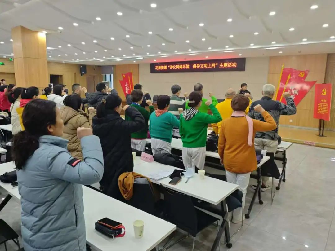 花桥街道开展“净化网络环境,倡导文明上网”活动。活动在国歌声中启幕,党员重温入党誓词,志愿者代表发起倡议,专家解读相关规定。此次活动增强了党员网络文明意识,助力构建清朗网络空间,让文明上网成为风尚。