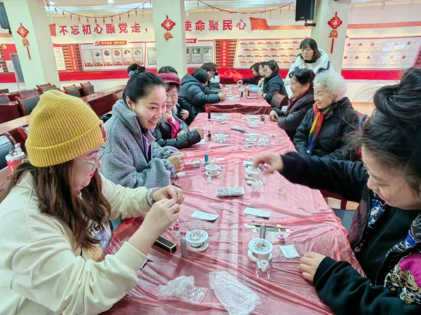 大智街道保成社区联合街道工会、科协和妇联开展“丹唇映新岁,巾帼绽芳华”活动。社区老中青三代妇女同志齐聚一堂,以巧手匠心共制口红,迎接新年的到来,也寓意对来年红红火火生活的美好期盼。