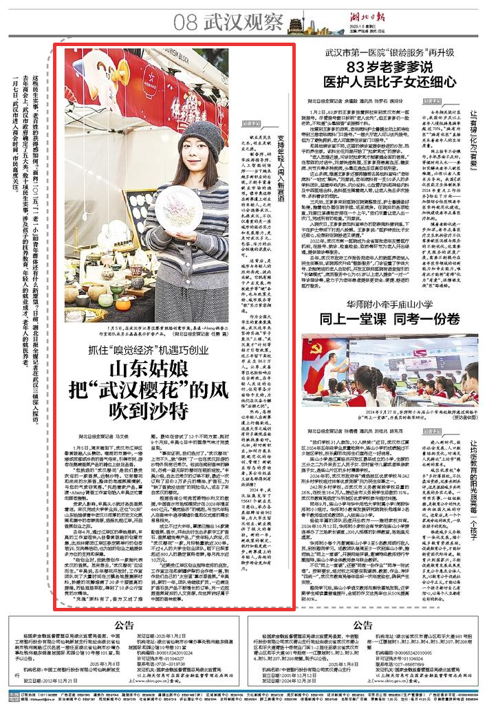 1月8日《湖北日报》武汉观察版聚焦新赛道上江岸创业的年轻人,展示城市与年轻人双向奔赴、彼此成就的故事,全文如下: