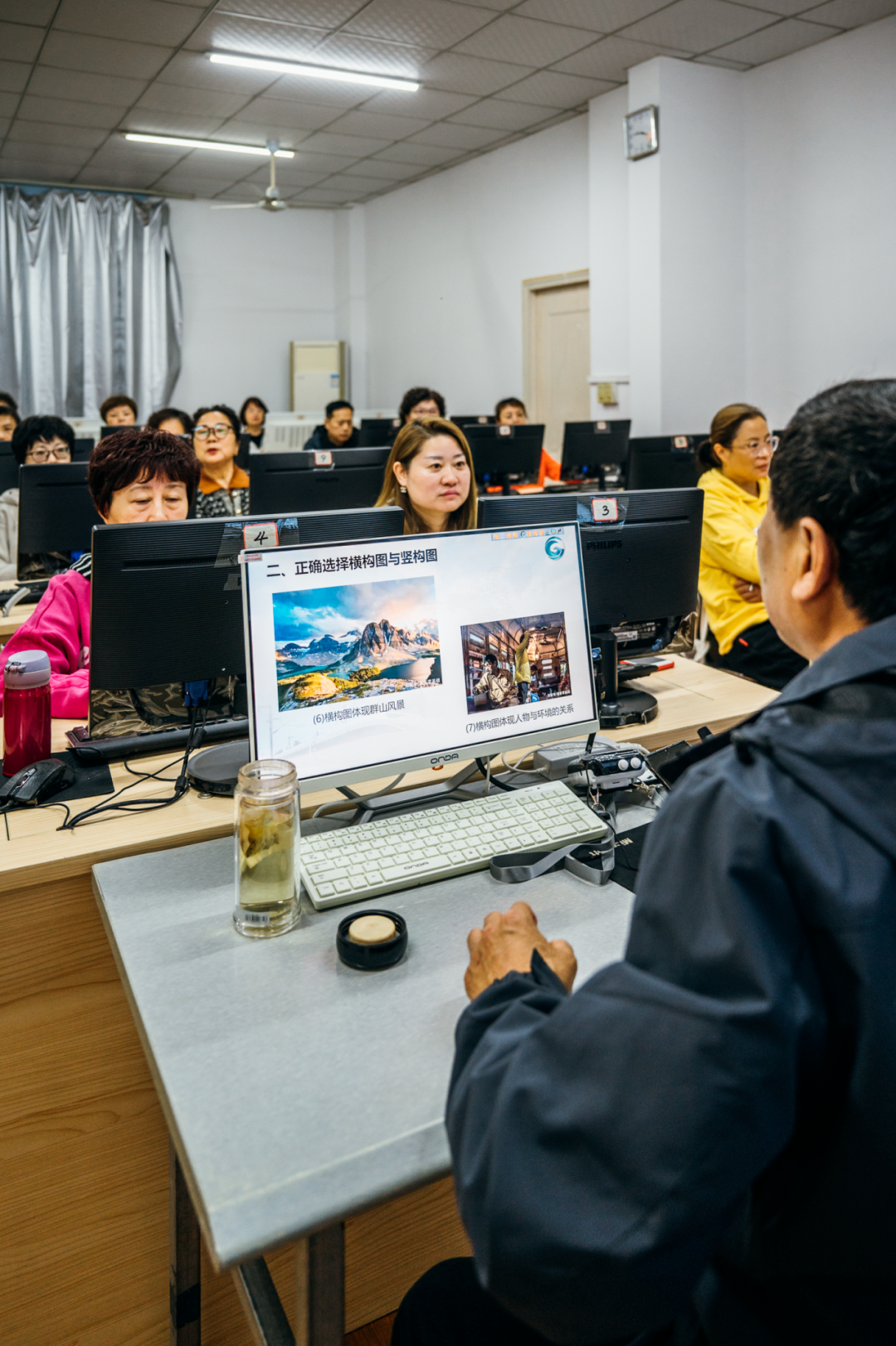 老人们聚精会神地上课,他们或挥毫泼墨、或翩翩起舞、或引吭高歌。