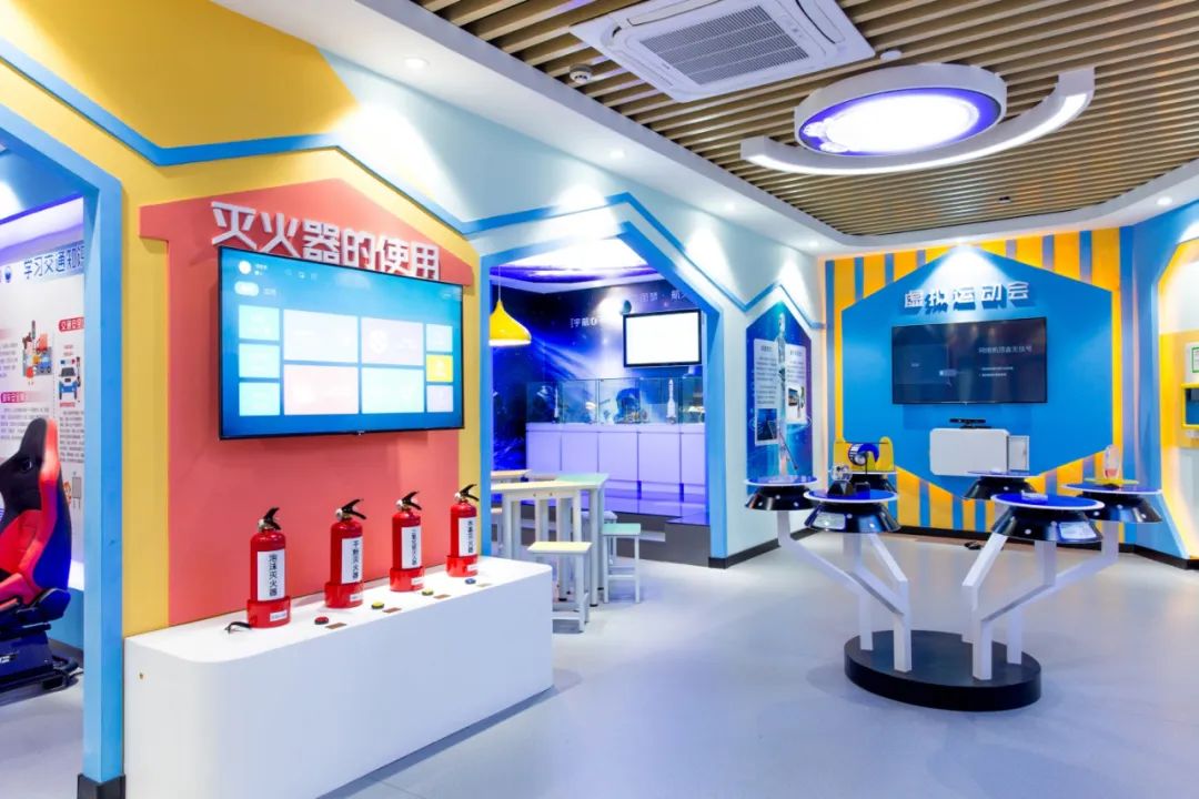 同样位于社区里的先锋社区科技馆,有“VR安全”互动、“交通安全驾驶”场景、“模拟灭火”“天文地理展示”等智能互动好去处。