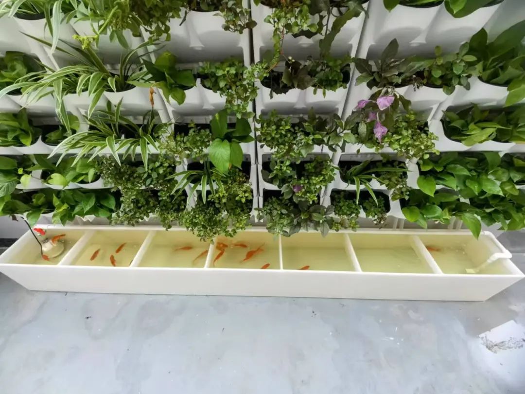 居民和社区志愿者当起“农夫”,在花园里打造出鱼菜共生栽培区域,种上应季的蔬菜,还搭配有绿萝和爬藤类植物。