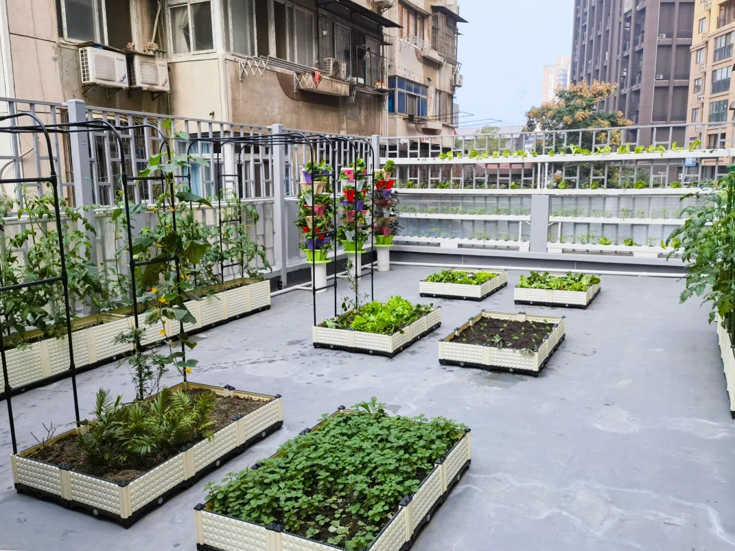 在盛锦社区,一片“空中绿洲”在屋顶绽放,成了居民们的“心灵花园”。