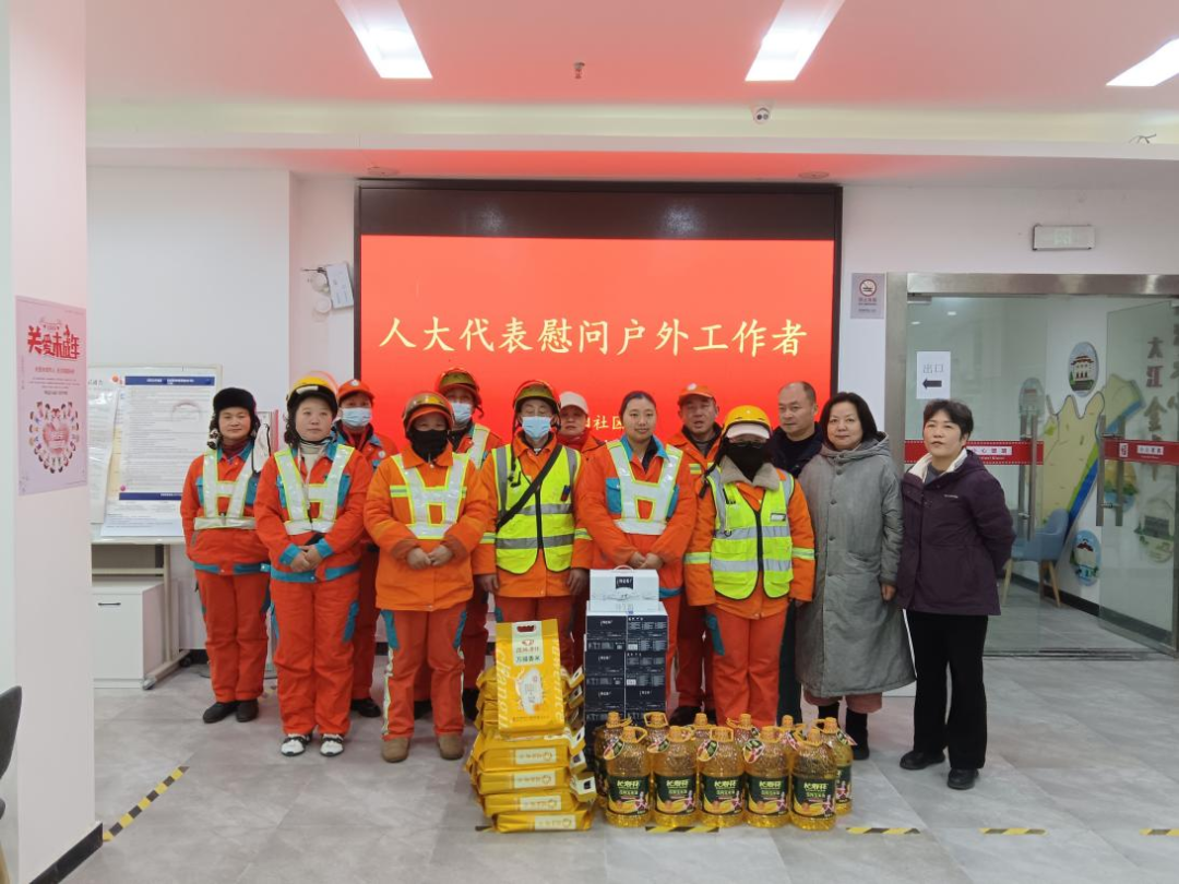 一元街道人大工委联合三阳社区开展人大代表暖心慰问户外工作者活动。为辖区环卫工人等户外工作者送上米、油、牛奶等生活物资,对他们在寒冬中始终坚守岗位的奉献精神表示感谢。