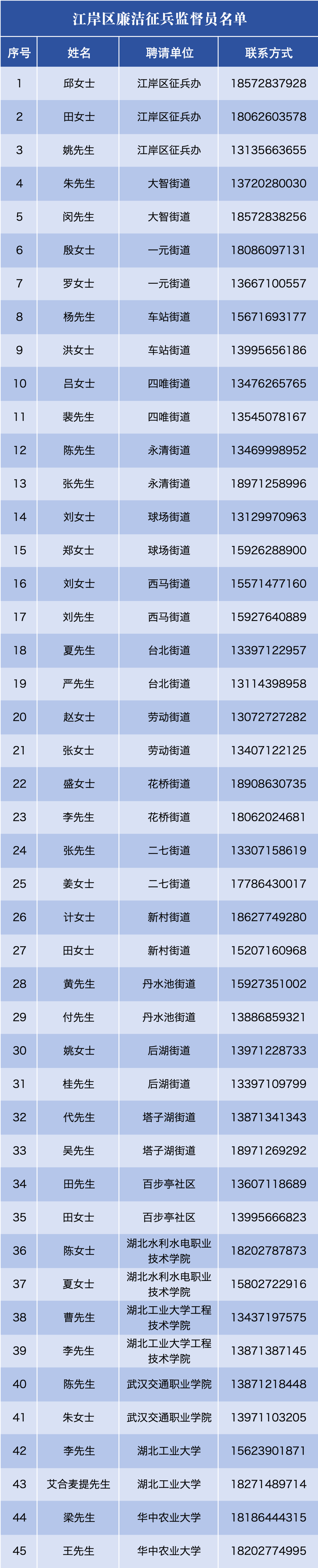 江岸区征兵办公室监督举报电话:027-68846226、027-68846307