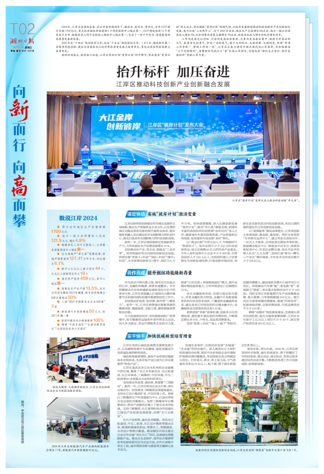 新的一年,江岸区将因地制宜发展新质生产力,力争高新技术产业增加值增长10%。