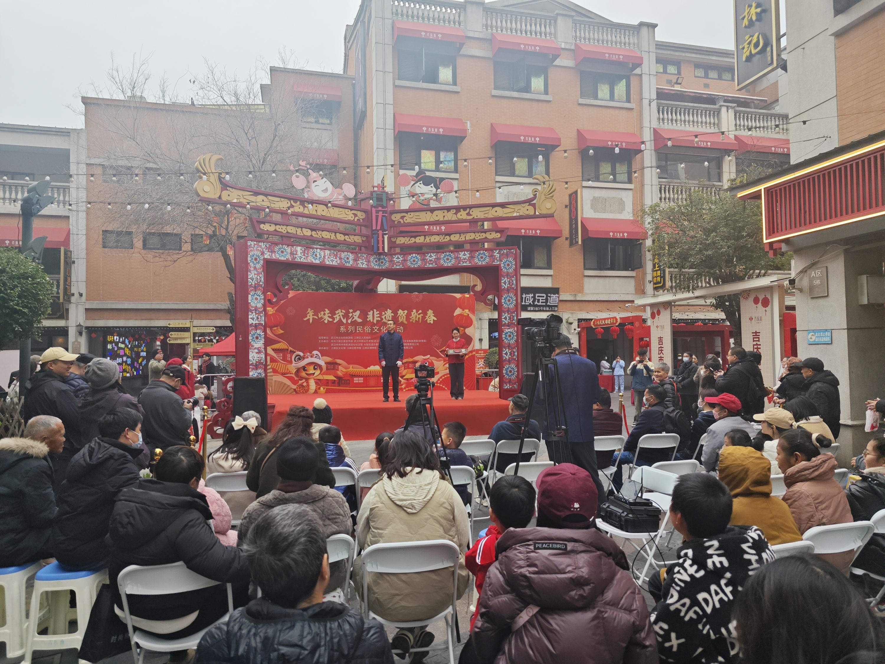 在吉庆民俗街中心舞台,来自武汉市“百姓明星”选拔大赛的优秀选手们以及众多文艺爱好者为观众呈现了一场精彩绝伦的文艺演出。通过歌舞、曲艺、器乐、杂技等艺术形式,传递了节日的喜悦与祝福,让观众们感受到了浓浓的年味。