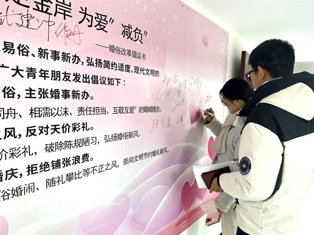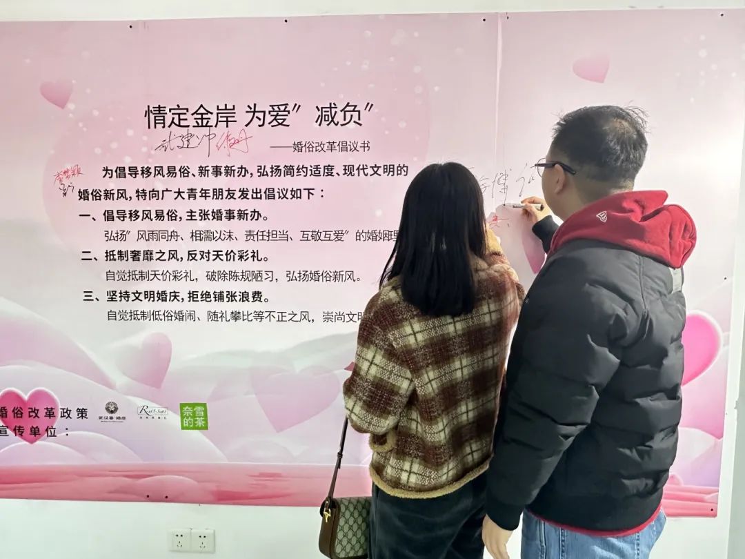 当天不少新人在《婚俗改革倡议书》上郑重签名,承诺成为新时代婚俗新风的践行者。市民刘女士激动地说:“在这么多人的见证下宣读誓言,感觉特别神圣。签下倡议书的那一刻,我不仅感受到了婚姻的美好,更觉得自己在为社会的婚俗新风贡献力量。”