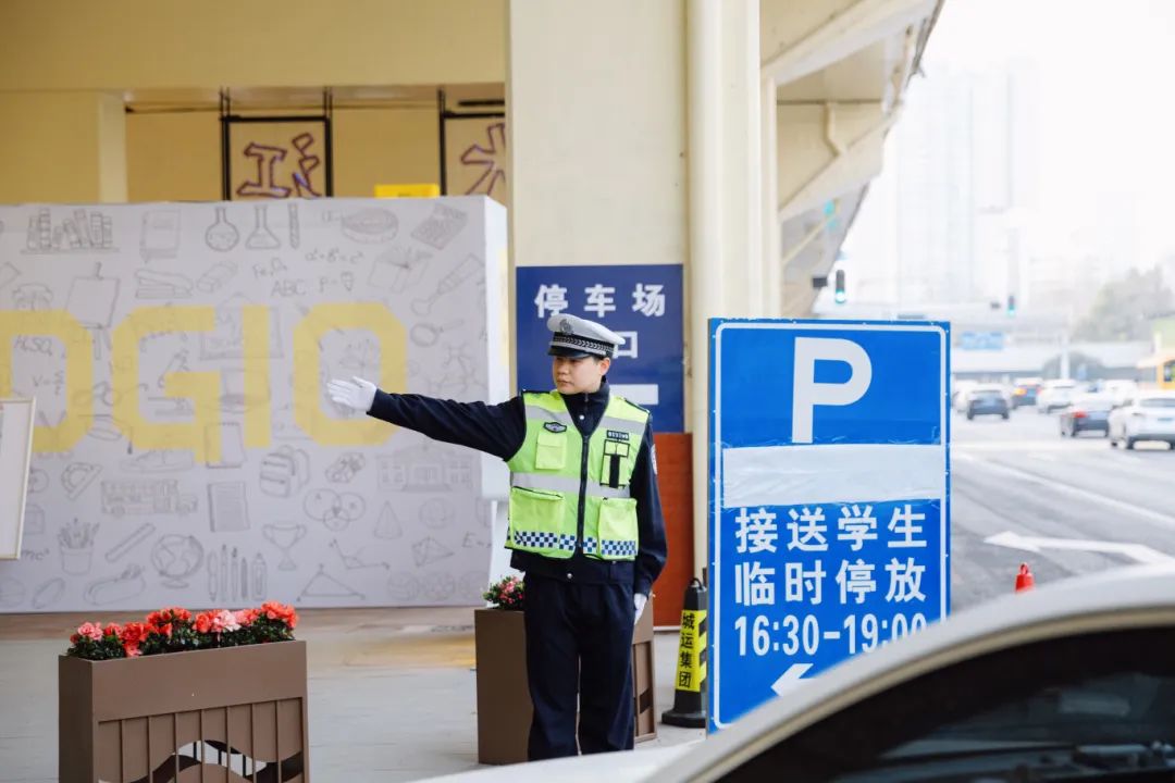 为确保学生家长和社会车辆安全出入停车场,江岸交警精心策划桥下空间内外交通组织方案,增设8块停车场交通指引标牌,新增横向减速标线5组,人行横道预告标线2组,导向箭头1组,配备停车泊位142个,在上学、放学时段供家长免费停车1小时,缓解停车难题。