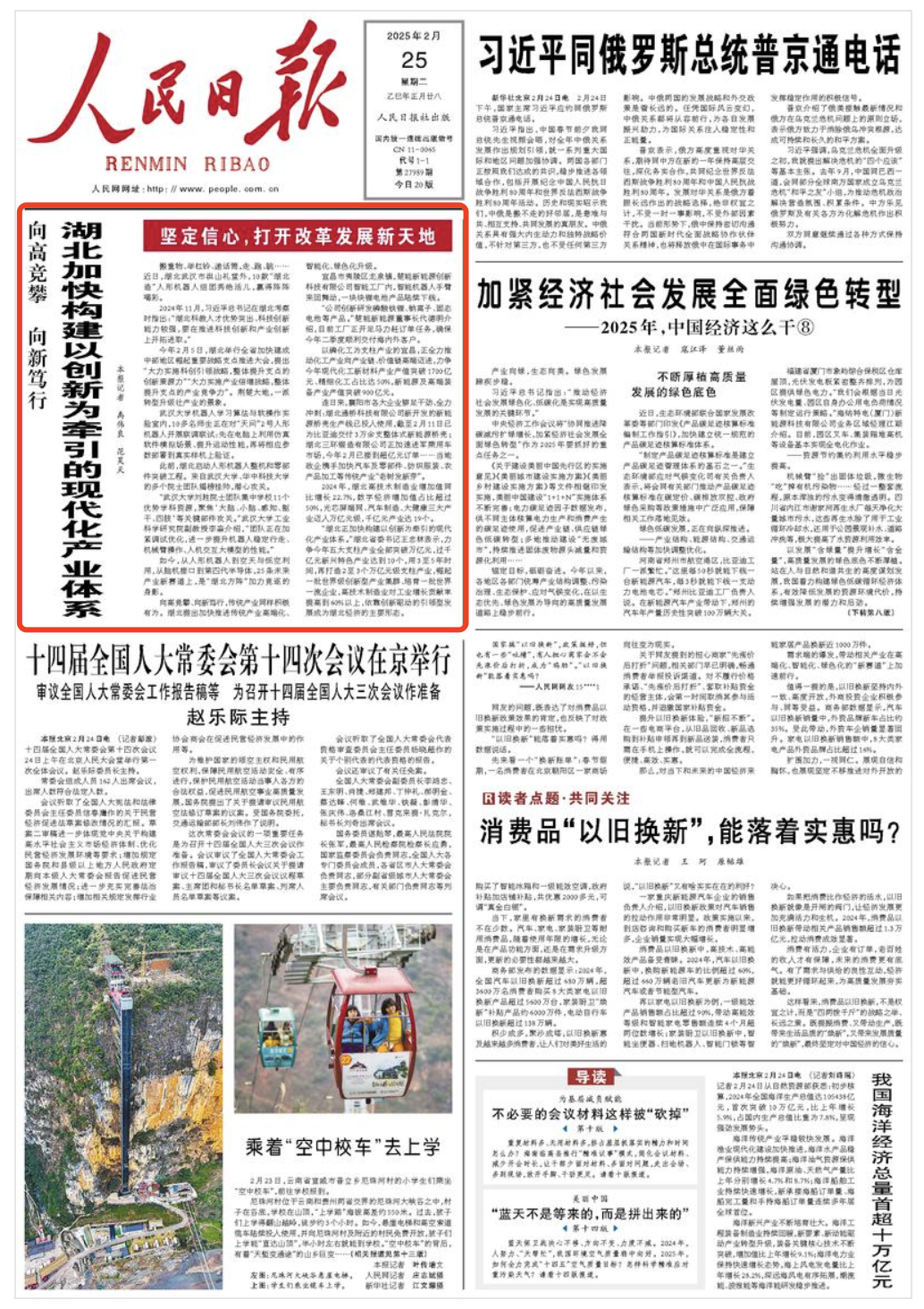 今天(2月25日),人民日报头版头条“坚定信心,打开改革发展新天地”专栏以《向高竞攀 向新笃行 湖北加快构建以创新为牵引的现代化产业体系》为题,刊发湖北推动科技创新和产业创新融合发展报道,其中聚焦光谷打造人形机器人创新发展基地的创新实践。以下为全文转载。